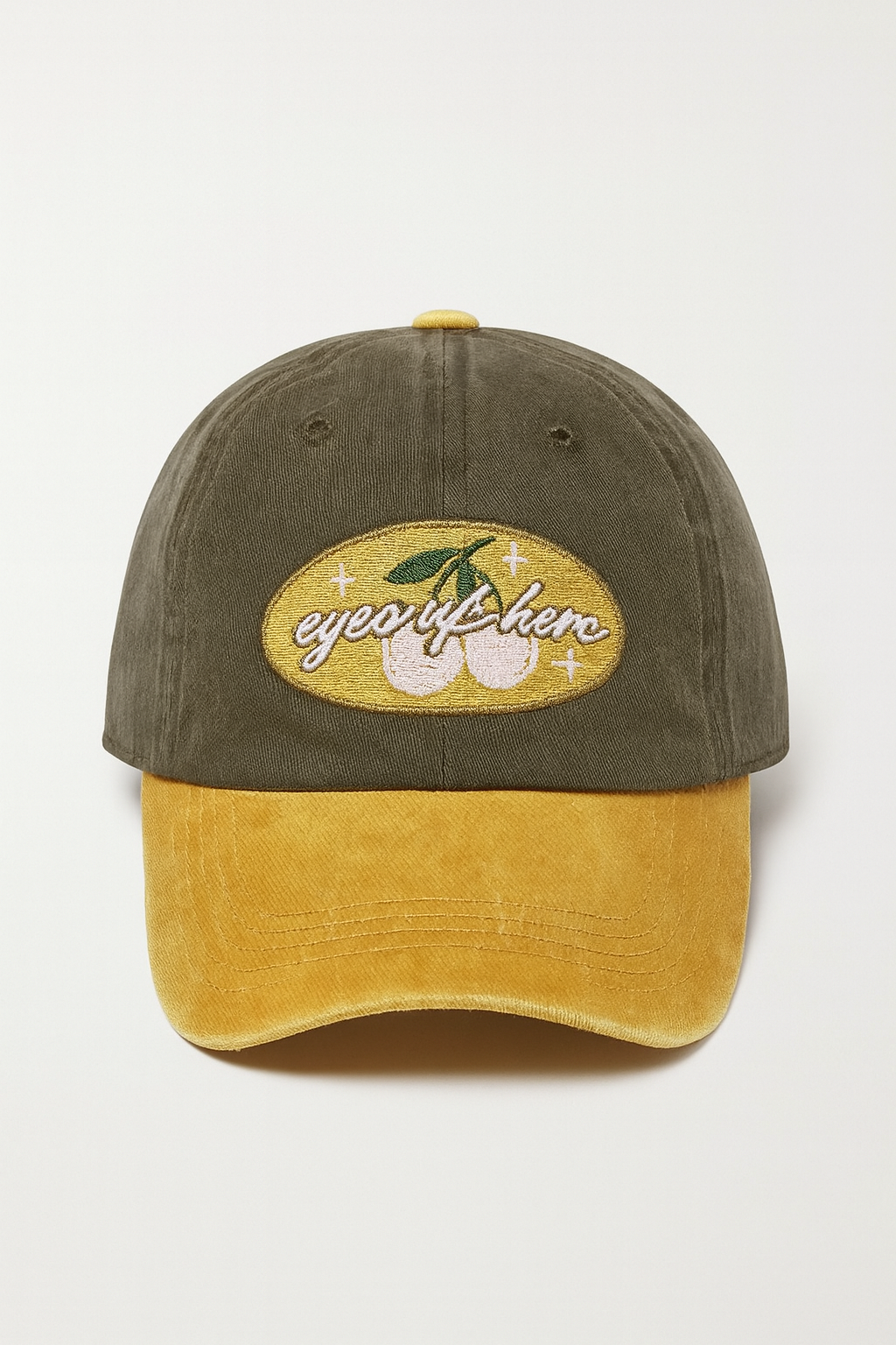 We like to call this cap, a gentle reminder. The "Eyes Up Here Cap" is our cheeky, and very stylish, cap perfect for correcting poor behavior.